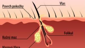 - vlasové folikuly se postupně ucpávají, čímž brání vlasům v růstu,